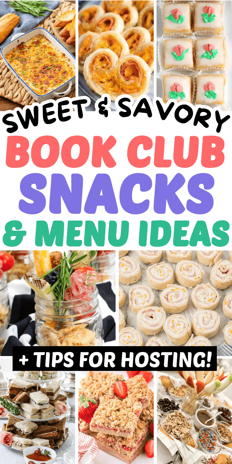 Fun easy book club snacks! Creative book club menu ideas like simple finger foods and sweet treats that make easy hosting snacks or fun potluck ideas.