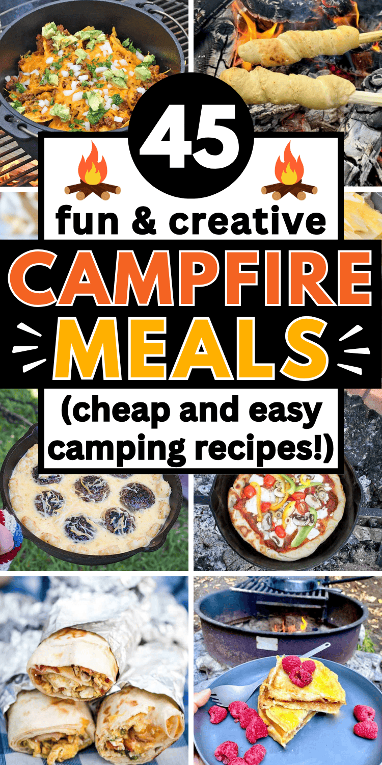 Cheap easy campfire meals! These campfire cooking ideas are perfect for fun camping food, backyard outdoor cooking, or bonfire party food.