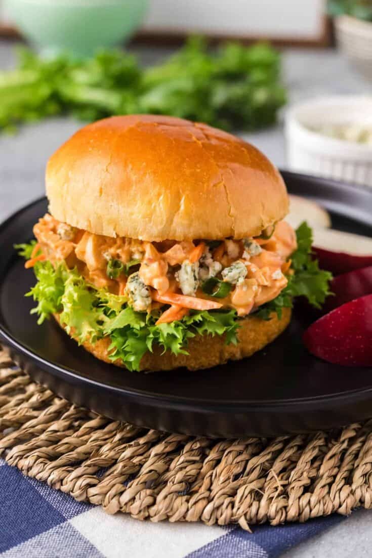 This Buffalo Chicken Salad is zesty, creamy, and so easy to prepare with only 6 ingredients and 15 minutes. It's perfect for piling onto buns, sandwiches, or lettuce wraps!