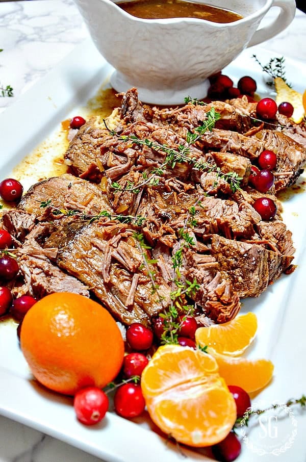 Slow Cooker Holiday Beef Brisket is a delicious Christmas main dish! It’s infused with the savory flavors of onion soup mix and the tangy sweetness of cranberry sauce.