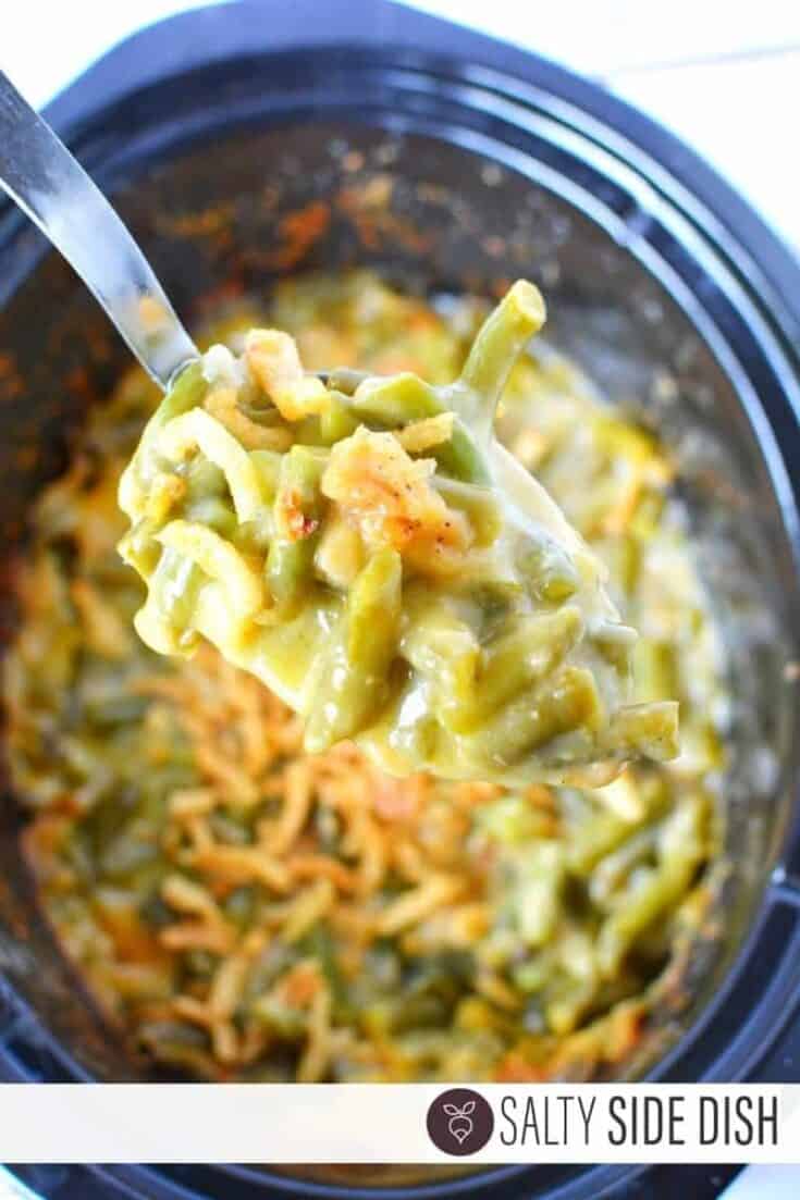 Classic Green Bean Casserole gets translated into a simple and easy slow cooker dish for the holidays. Just use frozen green beans and soups to create that nostalgic taste we always remember.