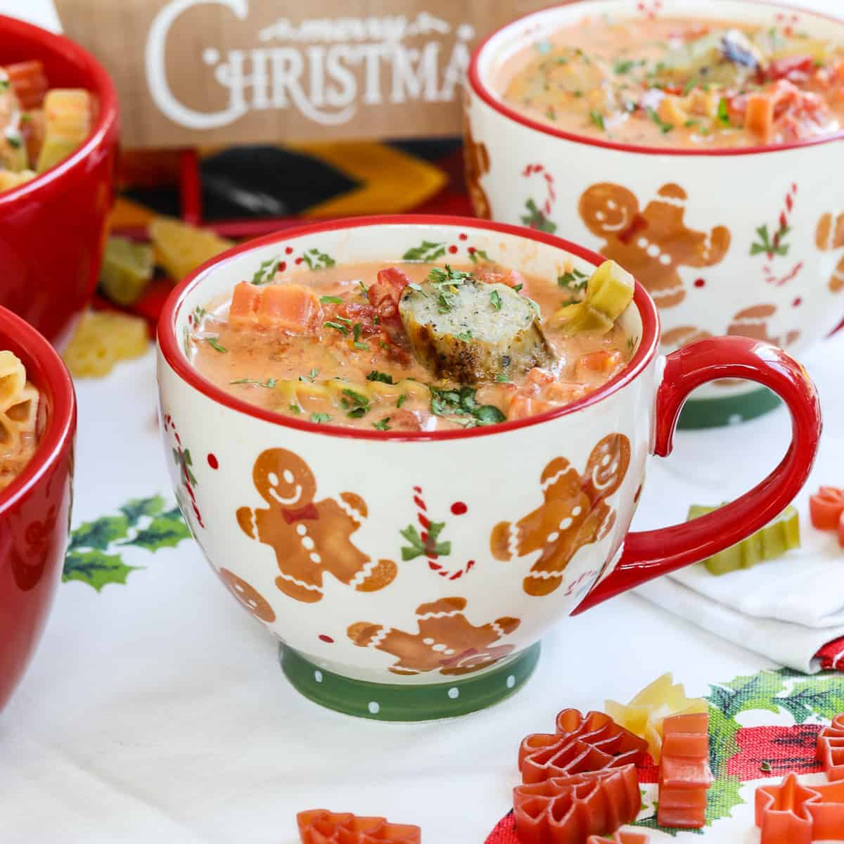 We all want warm comfort food during the holidays, and Christmas Soup is such an easy recipe to put together! Scoop into big bowls or warm mugs, and dip breadsticks, croutons, or crackers.