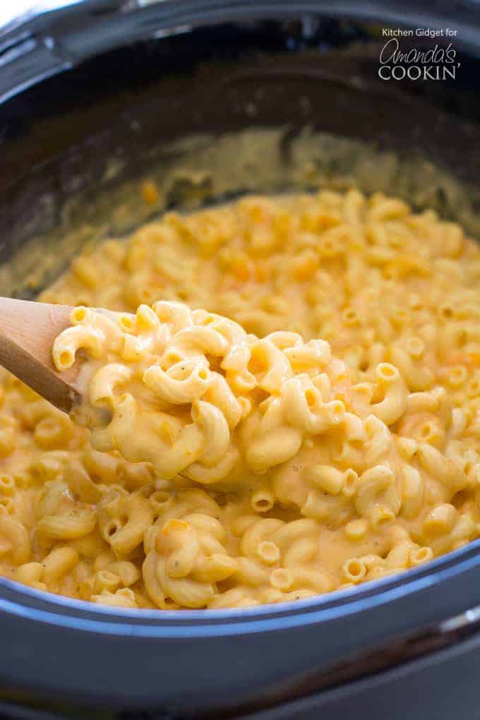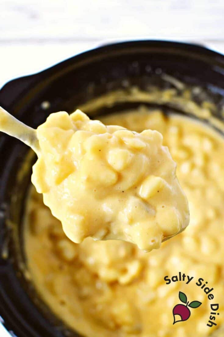 This creamy Crockpot Mac and Cheese actually starts with uncooked macaroni. Just throw the milk, cheese and seasonings in the slow cooker and let it do all the work!