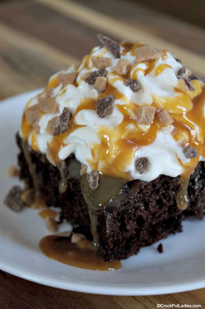 Crockpot Chocolate Cake is a luscious combination of caramel, chocolate cake and sweetened condensed milk for addicting flavor everyone will obsess over.