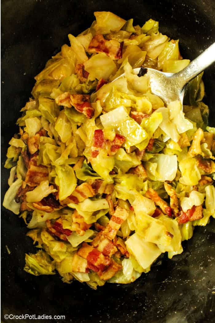 Simple 3-ingredient Crock-Pot Cabbage And Bacon is an old-fashioned and frugal side dish that's delicious and keto diet friendly too!