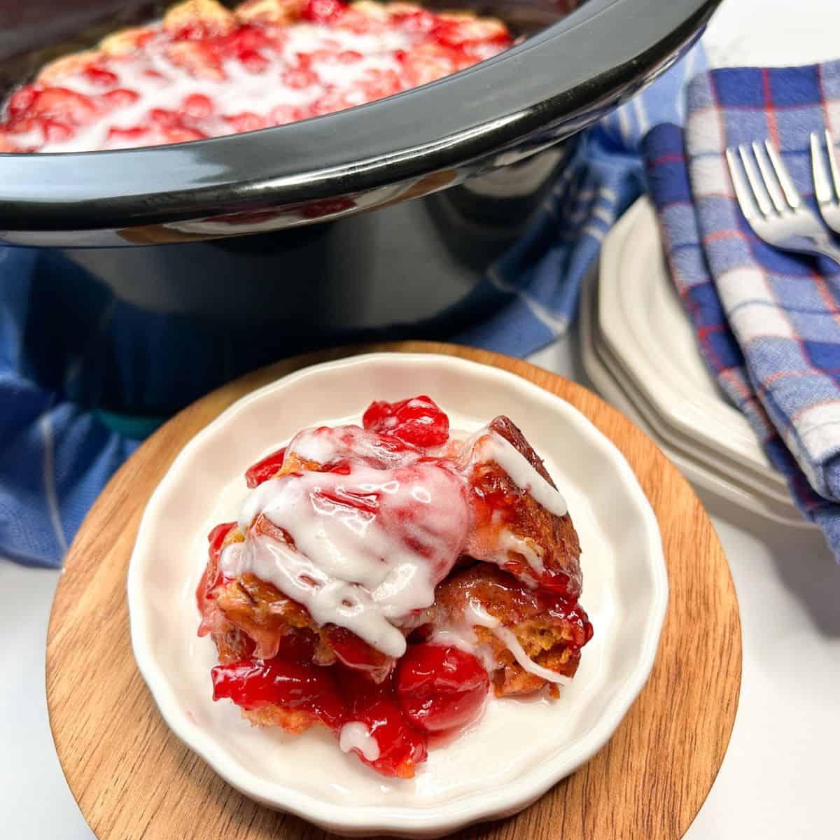 Crock Pot Cherry Cinnamon Rolls are soft, gooey 2-ingredient rolls slow cooked to perfection with a sweet fruit filling. Feel free to swap out a different fruit if you prefer.