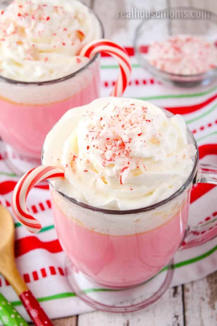 With just the right amount of peppermint flavor, warm and creamy Slow Cooker Candy Cane White Hot Chocolate is a tasty treat that instantly gets you into the holiday spirit!