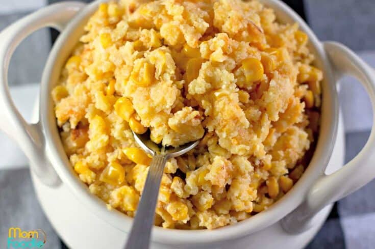 Crock Pot Corn Casserole puts a simple twist on this traditional Southern holiday season staple. This easy-to-make cheesy corn side dish combines the irresistible flavors of sweet corn, creamed corn, and Jiffy cornbread mix.