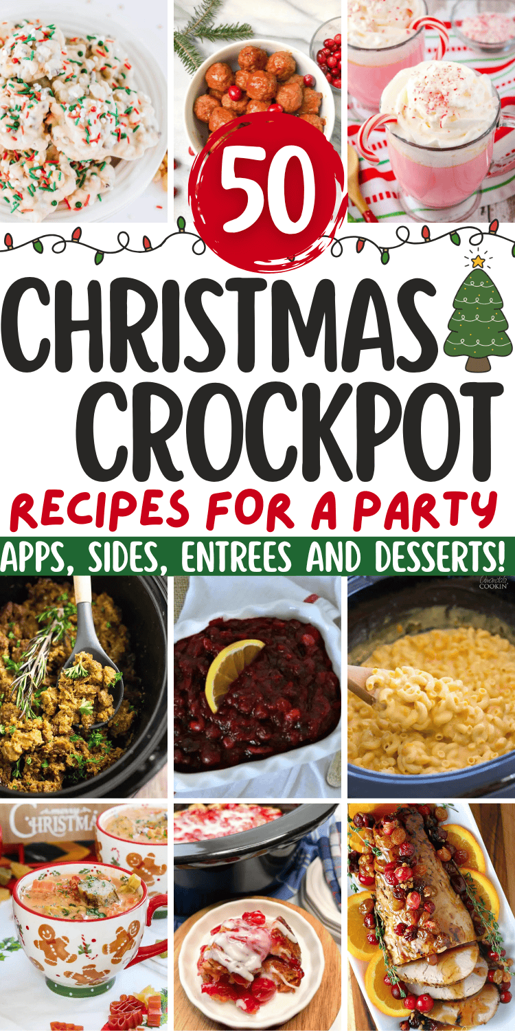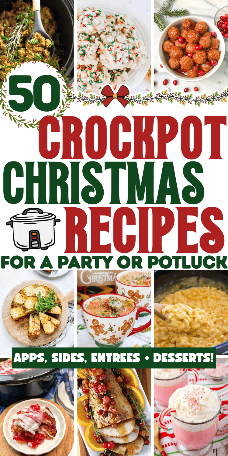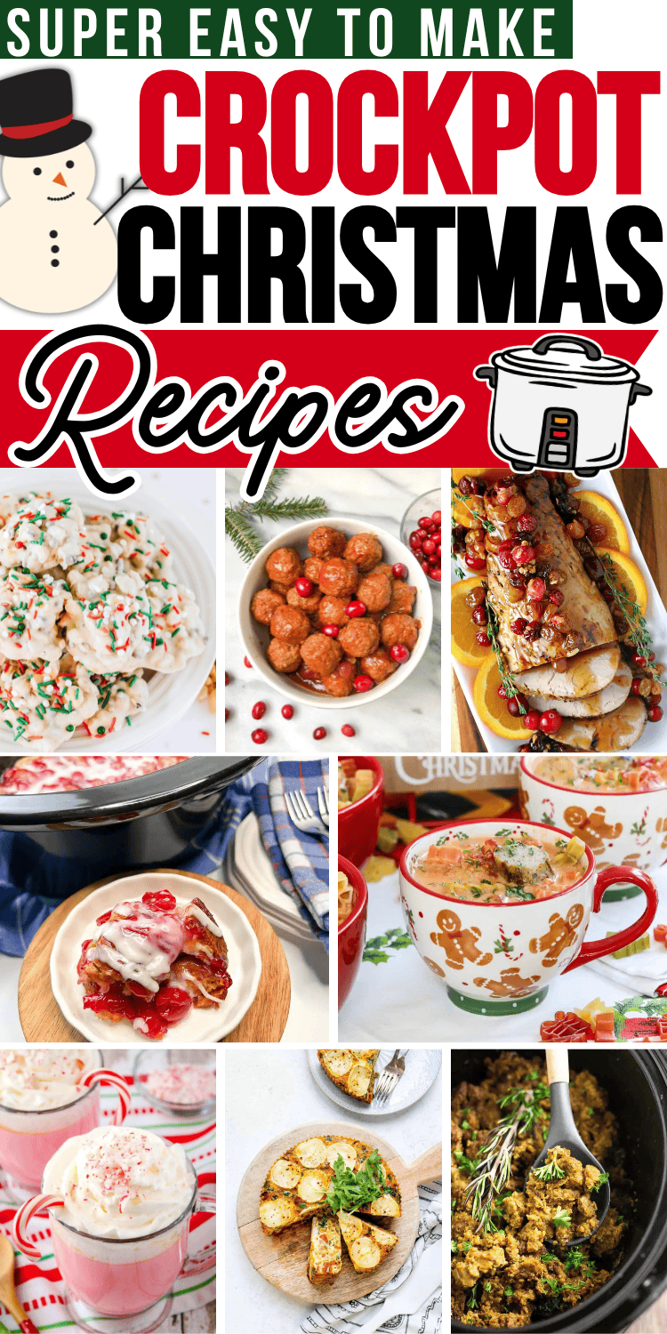 Easy Christmas crockpot recipes! Make ahead slow cooker holiday recipes like savory main dishes, easy Christmas sides, fun holiday appetizers, cozy Christmas breakfasts and sweet holiday treats.