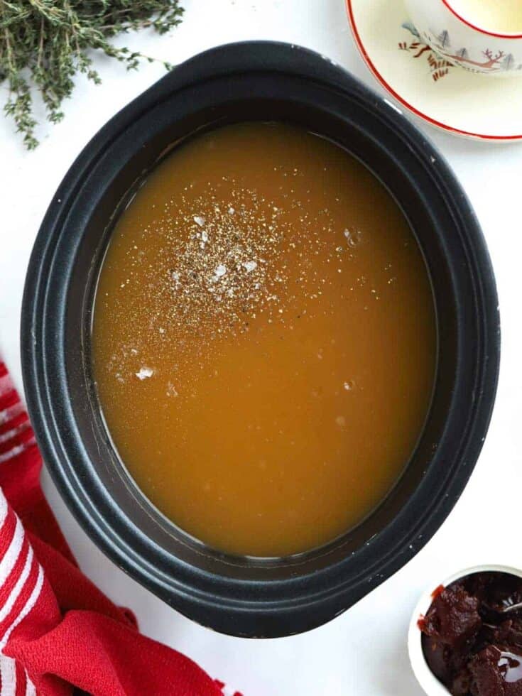 Slow cooking this make-ahead gravy is a really convenient and time-saving method, because it can be left alone to do its thing while you cook the rest of the meal, or stored and reheated later when ready to serve.