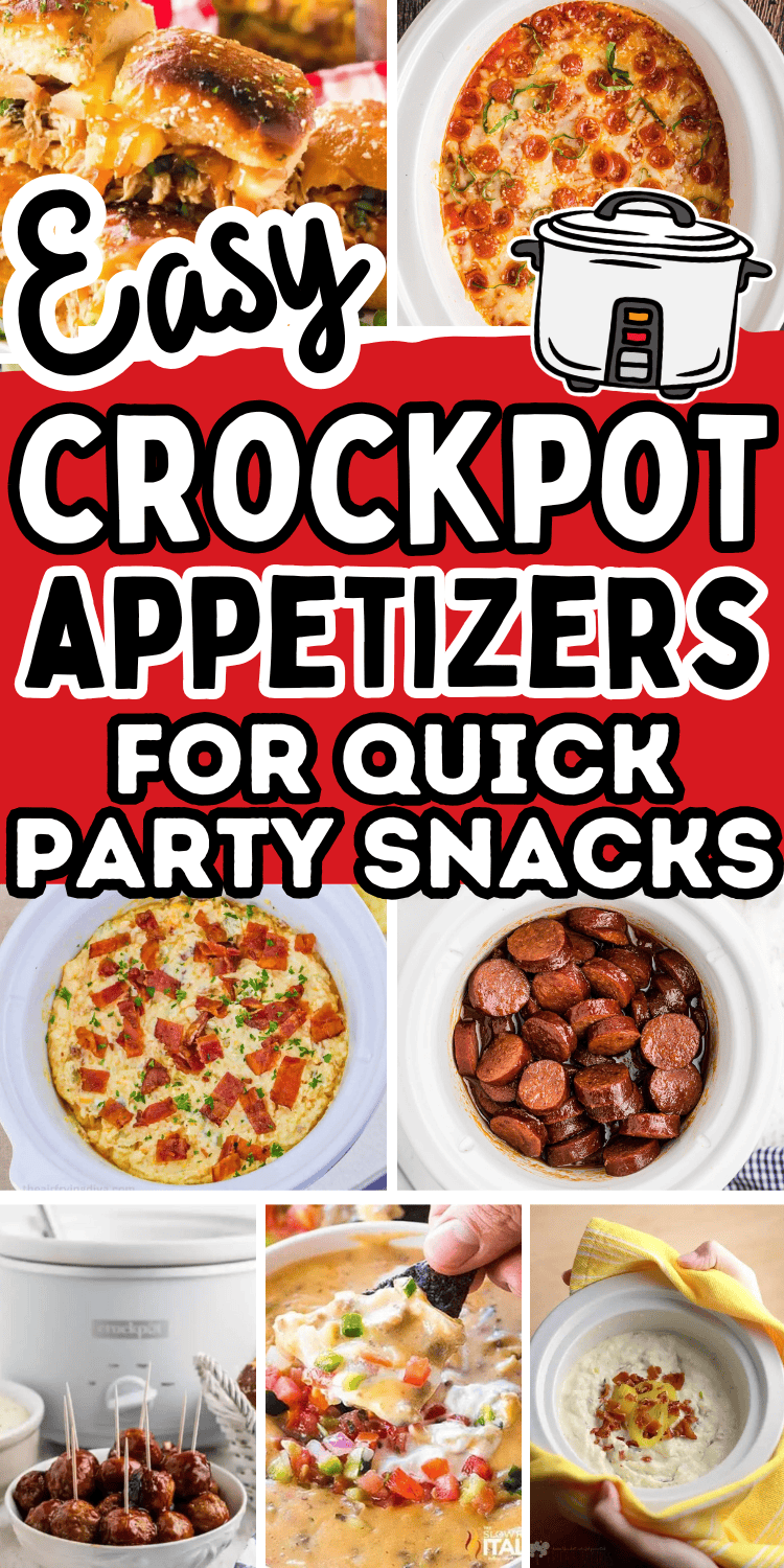 Super easy crockpot appetizers and dips! These delicious slow cooker snacks are perfect to make ahead for your next potluck, holiday party, or game day.