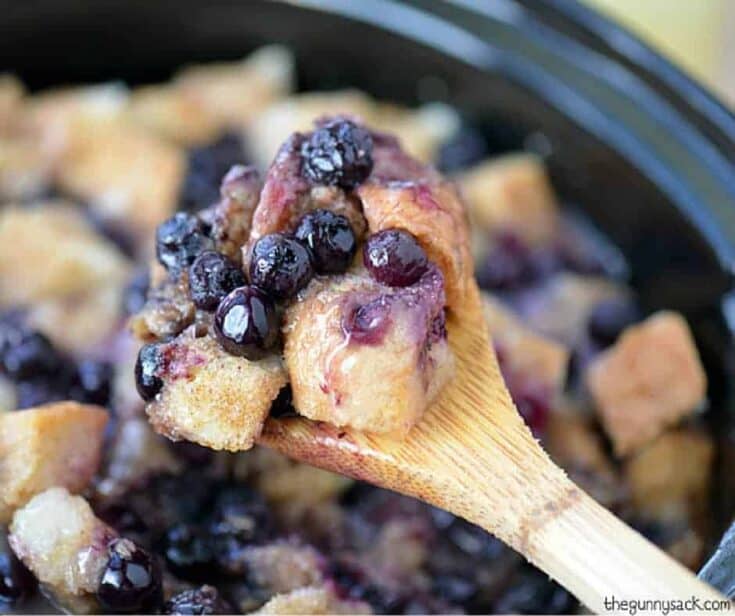 Start your holiday morning with a sweet slice of this delicious Crock-pot Blueberry Breakfast Casserole. Using fresh or frozen blueberries this breakfast bake is budget-friendly and filled with bright flavor.