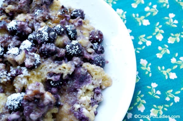 Slow cooker Blueberry Bread Pudding has a delicious lemon sauce, and the leftovers taste great as dessert too!