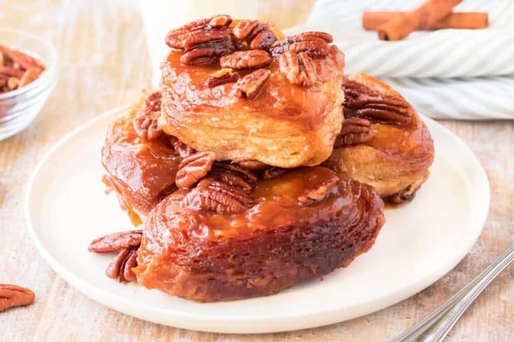 Slow cooker sticky buns are a total holiday breakfast favorite. Warm and sticky brown sugar cinnamon buns topped with pecans just taste like Christmas.