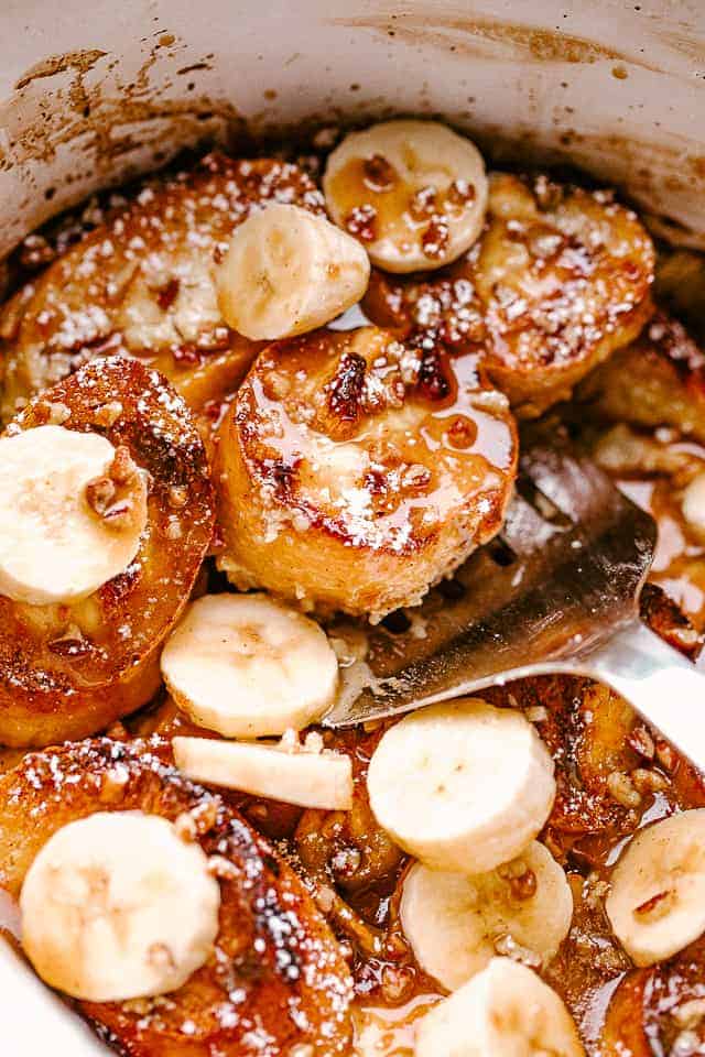 Creamy Crock Pot Banana French Toast is full of amazing flavors! It’s an easy hands-off french toast recipe that bakes right in the Crock Pot for an easy and unique holiday breakfast.