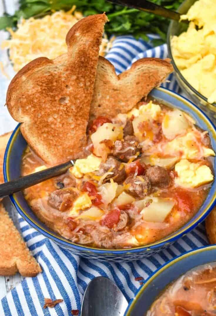 Yep, you read that right - breakfast soup! Filled with tasty breakfast ingredients, don’t knock it until you try it.