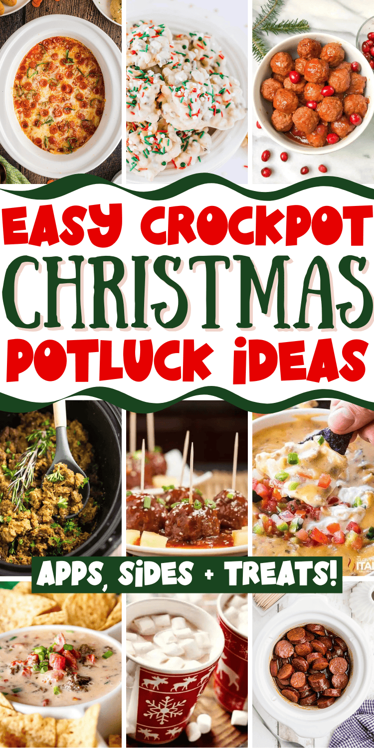 The best Christmas crockpot recipes for a potluck! These easy slow cooker Christmas party food ideas include holiday appetizers, Christmas side dishes, and sweet and savory holiday snacks.