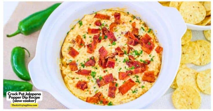 Crock Pot Jalapeno Popper Dip has all the flavors of poppers in a crowd pleasing dip made with cream cheese, jalapeno peppers, and plenty of seasonings. It's perfectly creamy with a bit of a spicy bite.