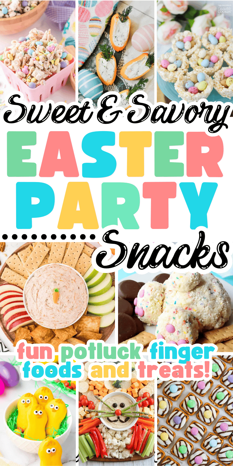 Easy Easter snacks for a party or potluck! These fun and cute Easter snack ideas include festive finger foods, sweet treats, snack platters and more!