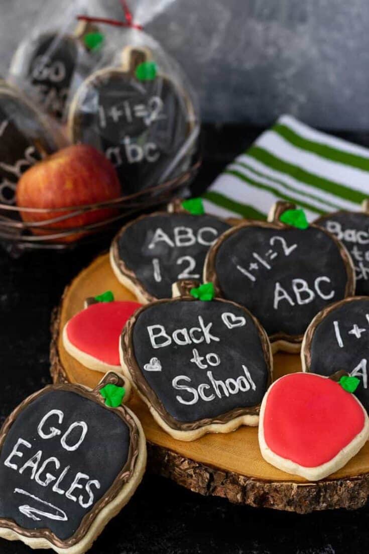 Make adorable back to school sugar cookies with this chalkboard apple sugar cookies tutorial! Perfect for teacher gifts, back to school parties, or fun after school treats.