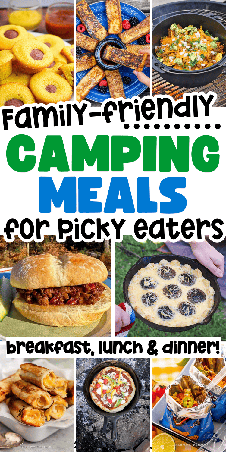 Simple family camping meals for picky eaters! These fun camping food ideas make easy camping breakfasts, lunches, and dinners for families.