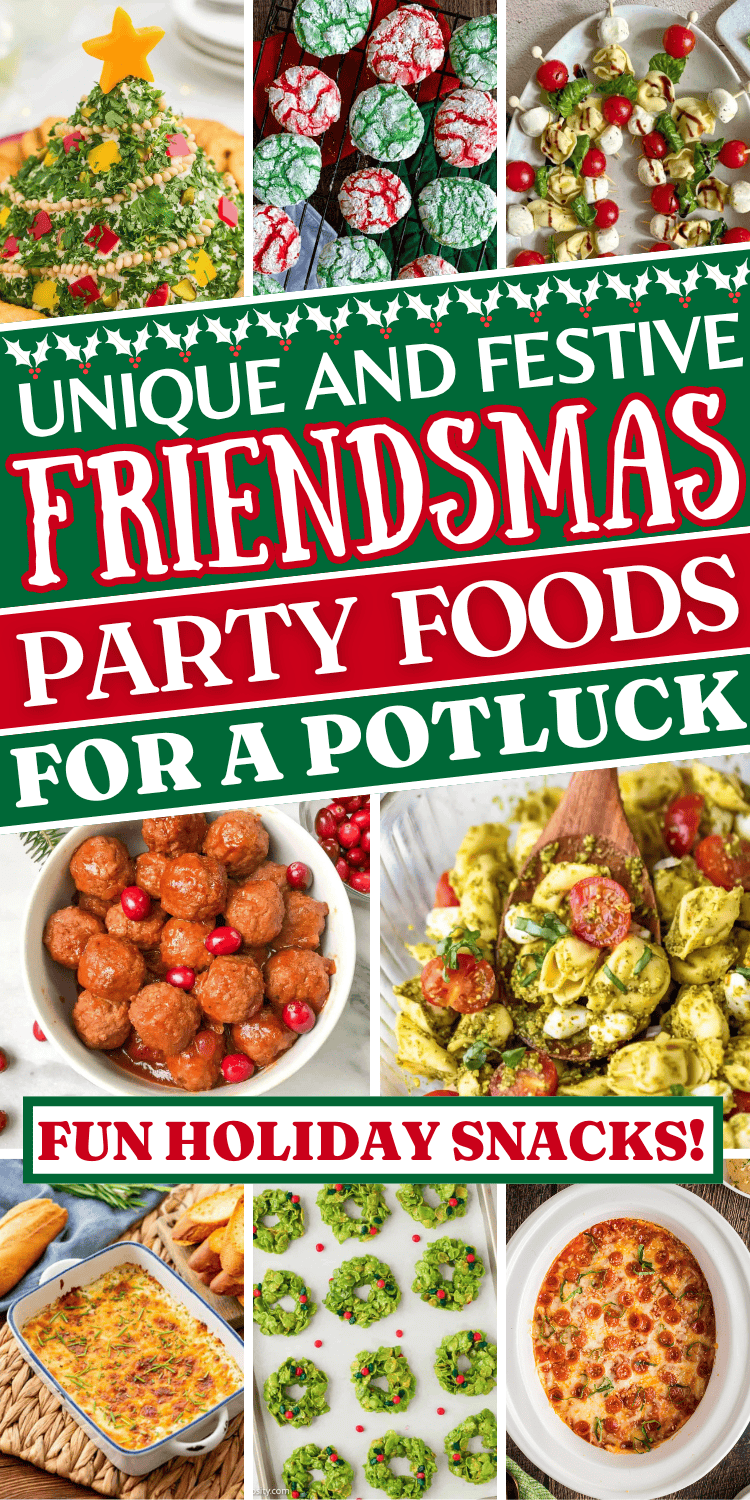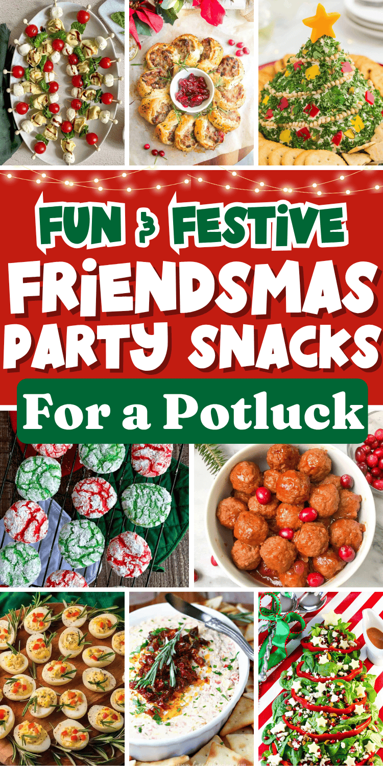Easy Friendsmas party food ideas! These fun Friendsmas potluck dishes include finger foods, holiday snacks, and dessert ideas for a party.