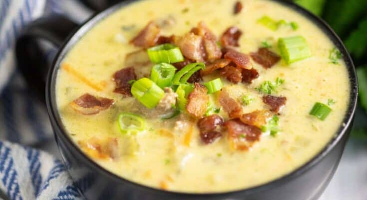 Slow Cooker Cheeseburger Soup is creamy and hearty with ground beef, tender potatoes, veggies, and lots of gooey cheese. Creamy, comforting, and hearty enough for big appetites.