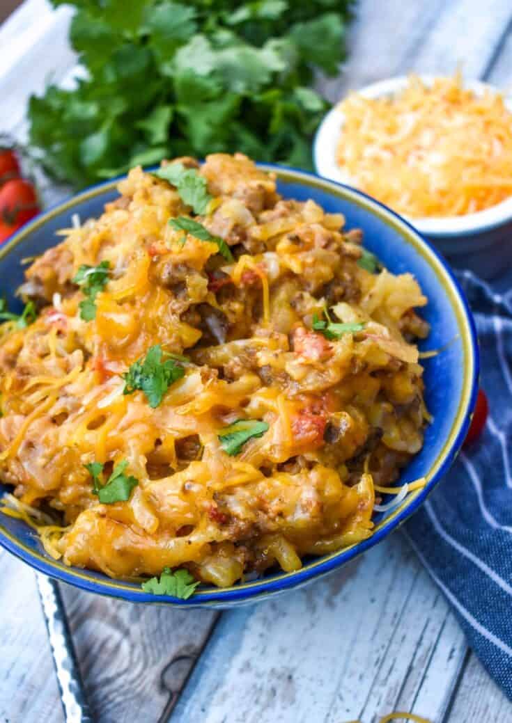 Slow cooker Taco Potato Casserole features your favorite Tex Mex flavors mixed with shredded hashbrowns. It's a satisfying variation to your standard taco night and an easy, family friendly meal.