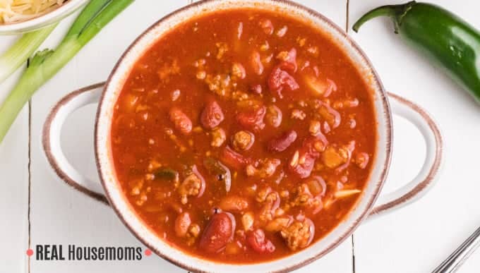 This easy Crockpot chili recipe is loaded with ground beef, seasonings & tons of flavor. It's hot and ready whenever you're ready to eat dinner.