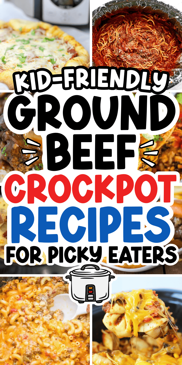 Easy ground beef crockpot recipes for picky eaters! These cheap slow cooker hamburger recipes make easy kid friendly dinners and simple family crockpot meals.