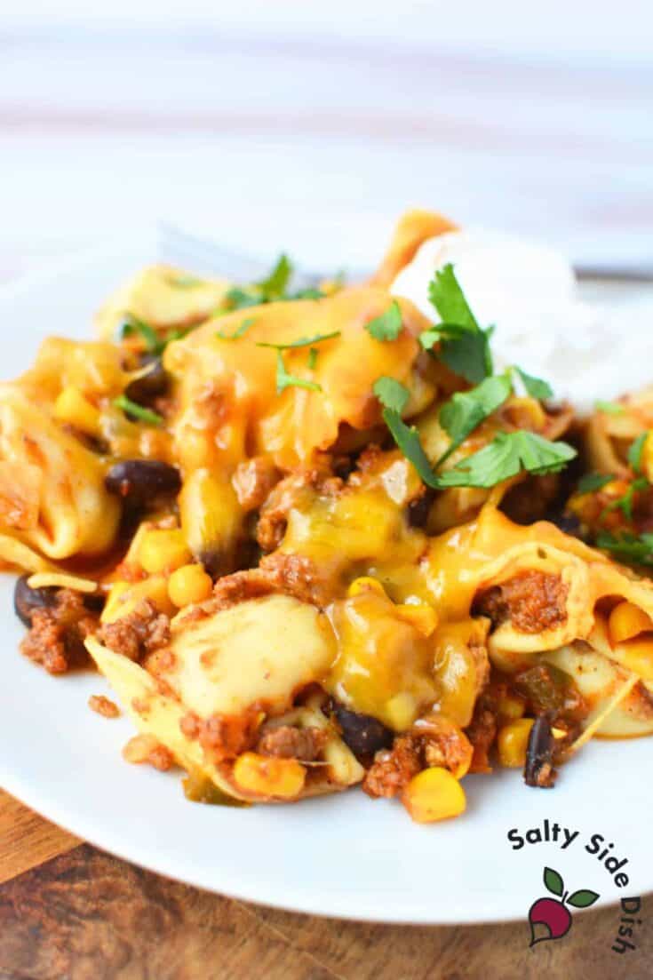 Taco Tortellini is the ultimate slow cooker meal! With seasoned beef, black beans, salsa, and cheesy tortellini, this recipe is a must-try.