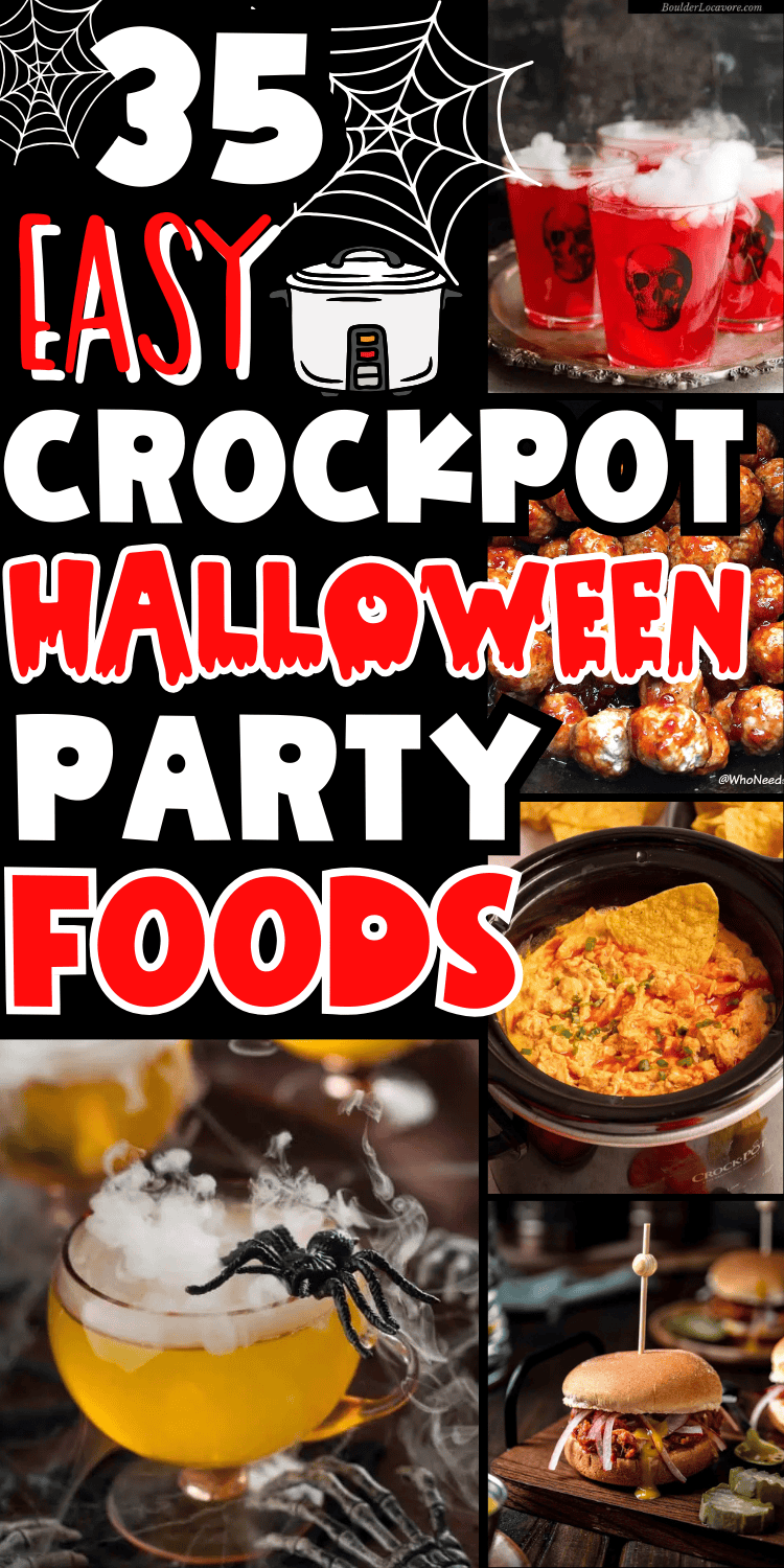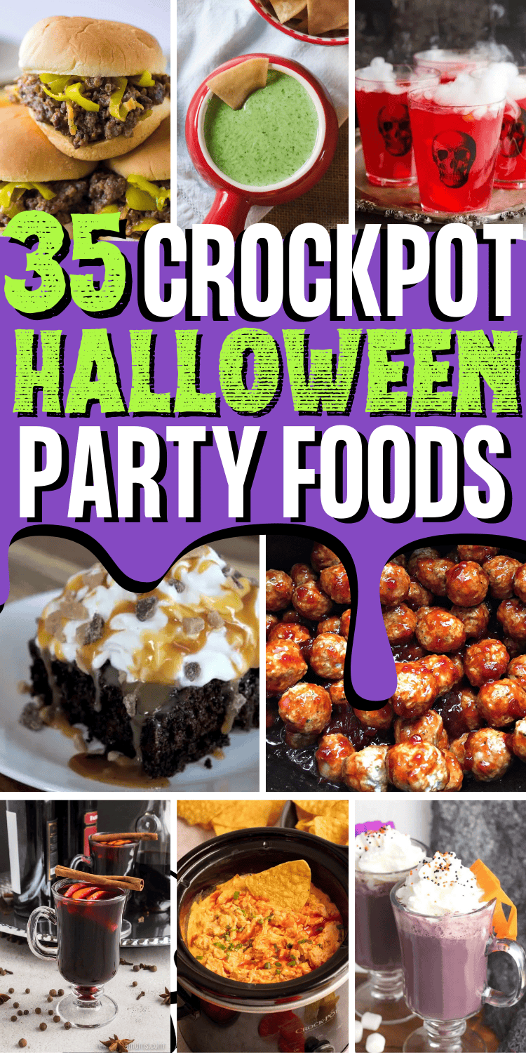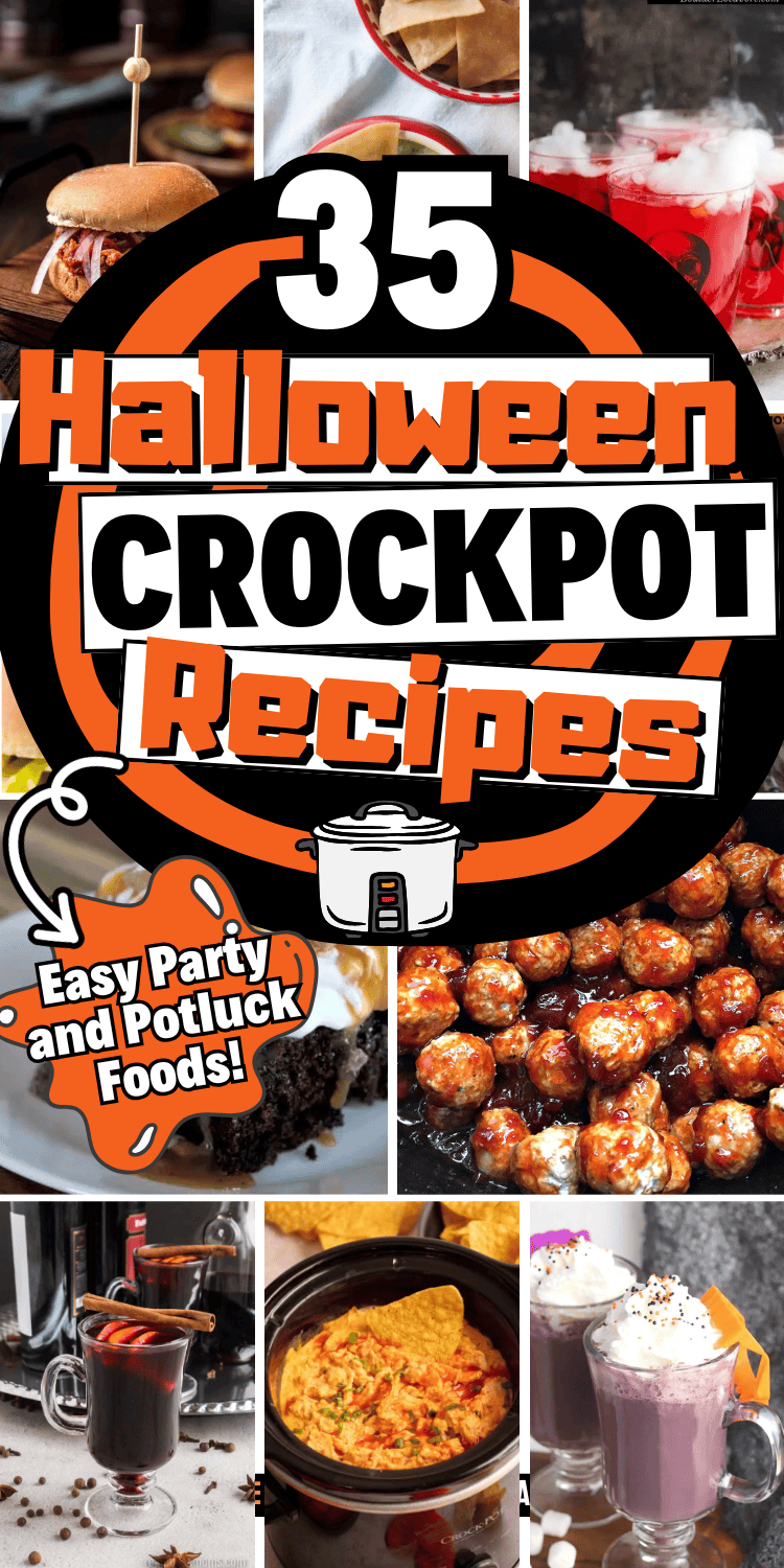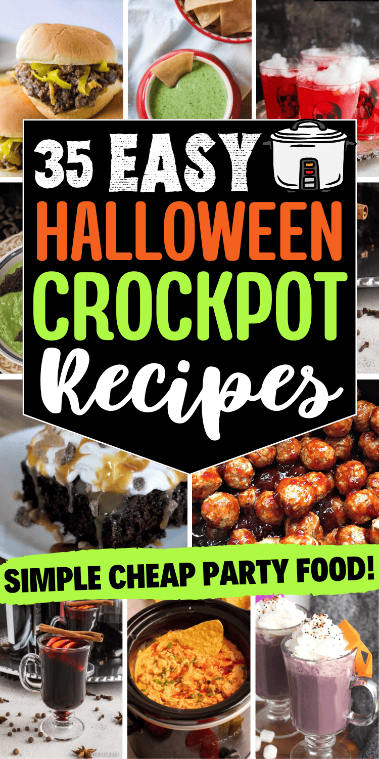 Super easy crockpot Halloween food ideas! These crowd-pleasing Halloween slow cooker recipes are festive, budget-friendly and easy to make for your Halloween party or potluck!